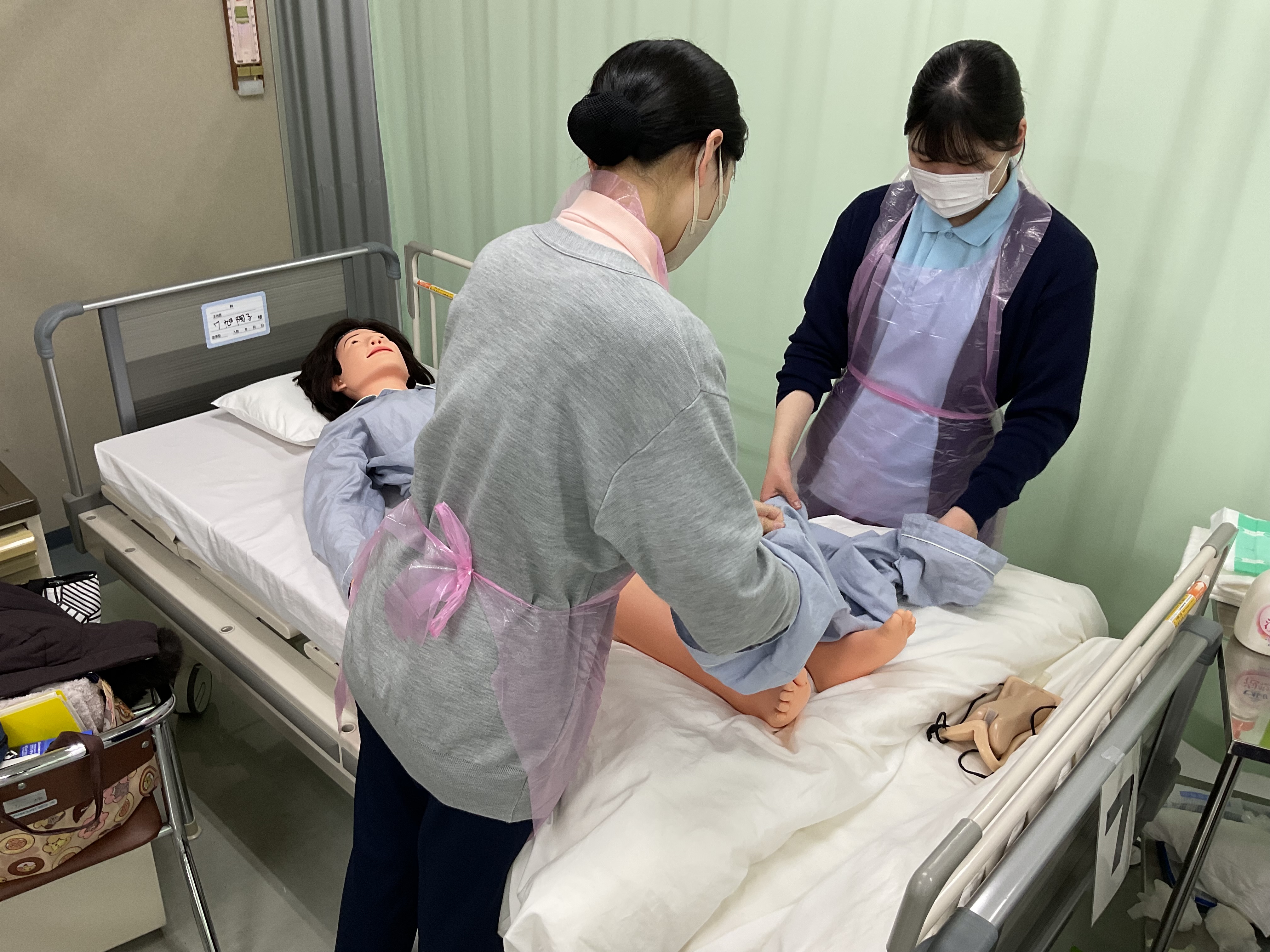 学校でしっかり沐浴の方法を習得し、3年次の実習で実施します。